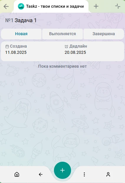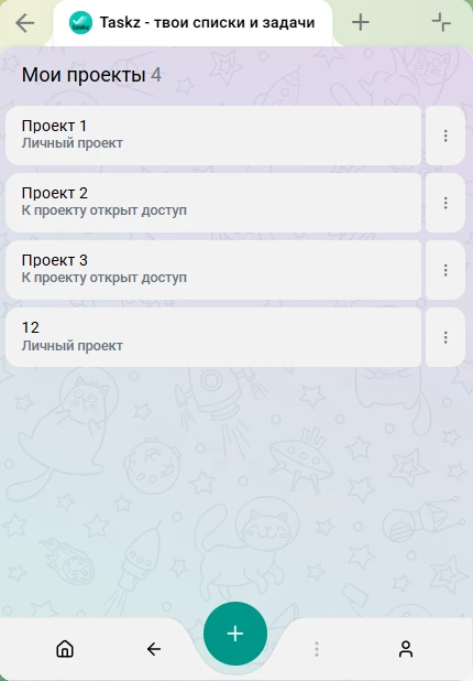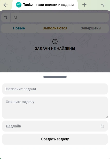 Это чат-бот и мини-приложение, предназначенные для удобного планирования задач и совместной работы над проектами прямо в Telegram. Taskz помогает организовать рабочий процесс, контролировать выполнение задач и взаимодействовать с командой без необходимости использовать дополнительные приложения.