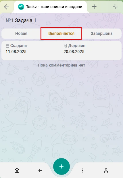 Каждая задача автоматически получает статус «Новая» и выделяется голубым цветом. Вы можете изменить её статус вручную: