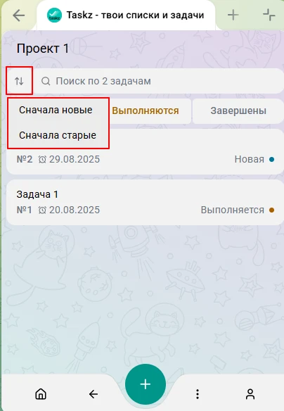 Бот позволяет быстро находить нужные задачи и проекты с помощью гибкой системы фильтрации. Пользователи могут сортировать задачи по новизне от новых к старым или наоборот.